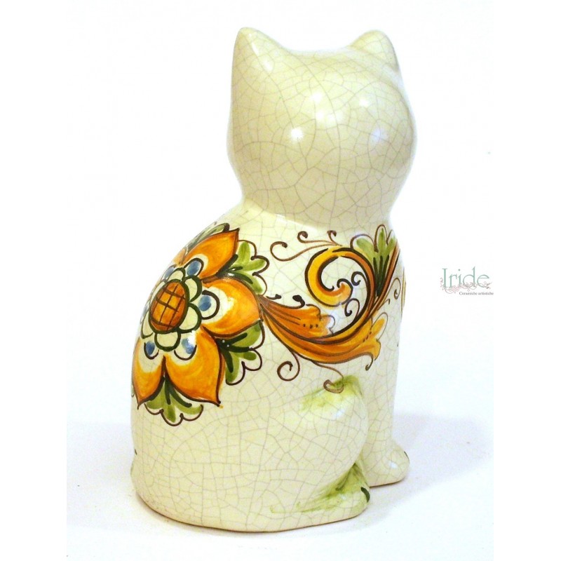 Gatto in ceramica artistica dipinto a mano, lo smalto presenta una finitura satinata cavillata