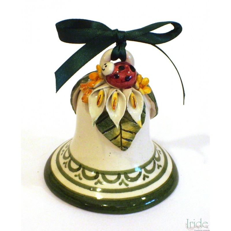 Campanella in ceramica interamente modellata e dipinta a mano.
