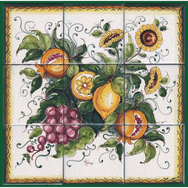 Pannello di Mattonelle in ceramica decoro frutta assortita e girasoli