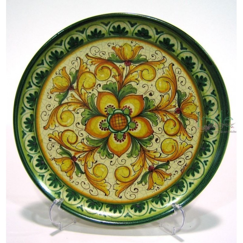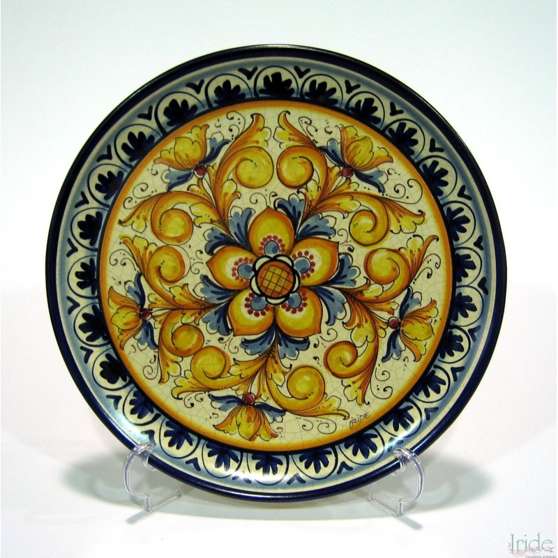 Piatto da muro dipinto a mano, decoro " rosone e gigli " diametro 45 cm