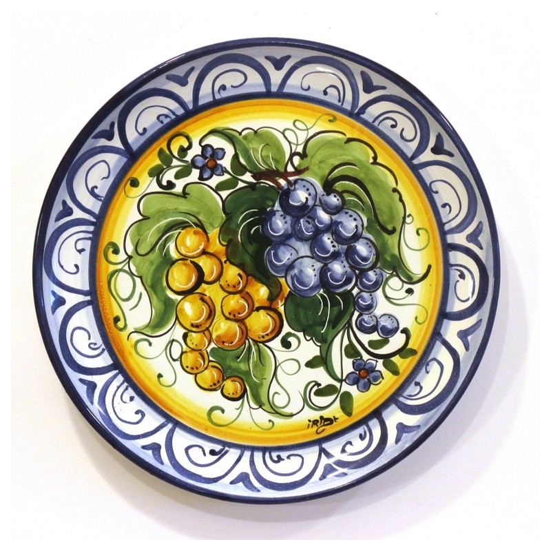 Piatto da muro dipinto a mano, decoro " Uva ", disponibile in varie misure e colori