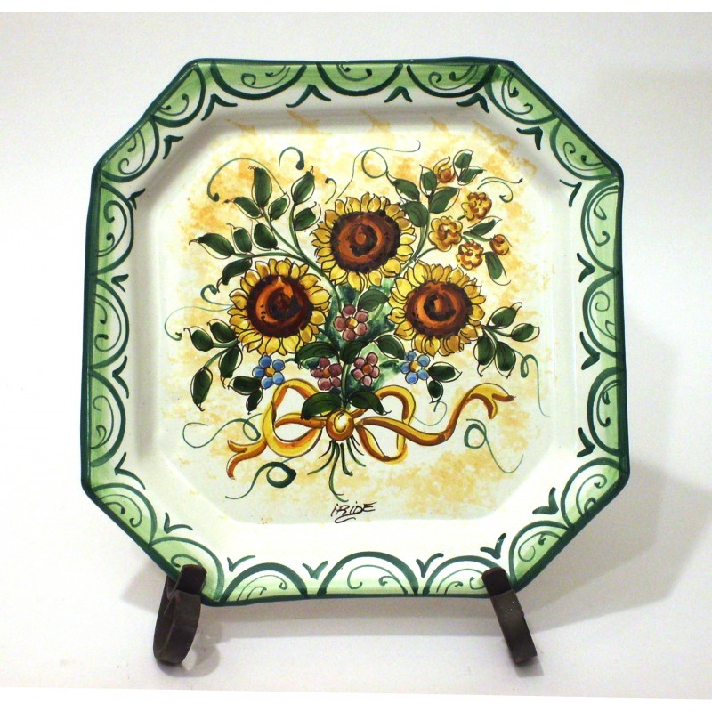 Piatto da muro ottagonale dipinto a mano, decoro Girasoli, disponibile in vari colori e misure