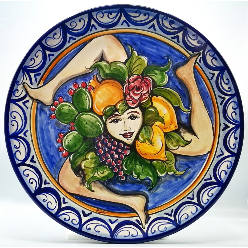 Piatto da muro dipinto a mano, decoro "Trinacria", disponibile in varie misure e colori