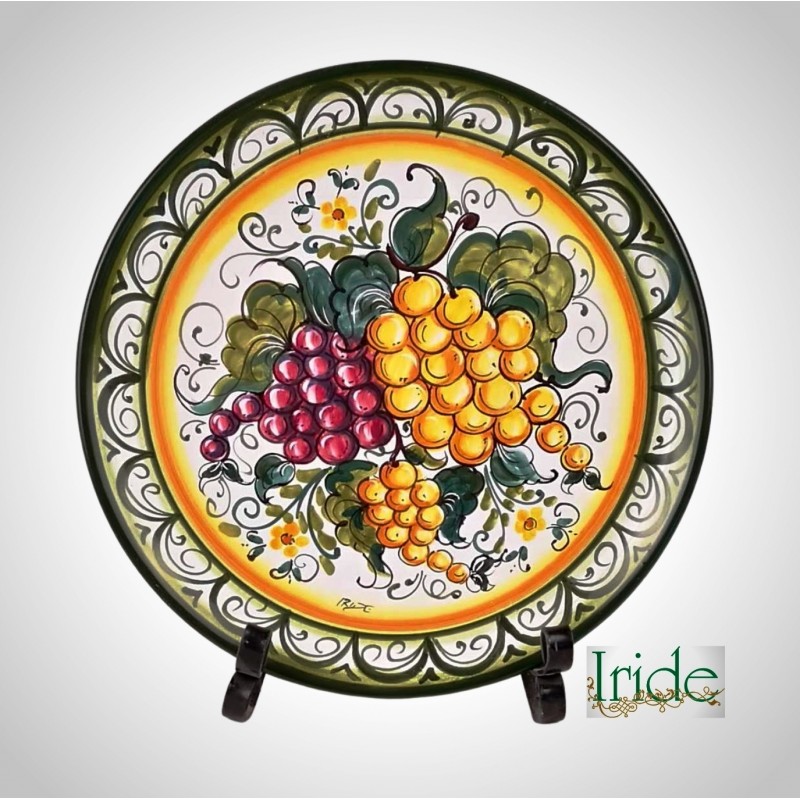 Piatto da muro dipinto a mano, decoro " Uva miista ", disponibile in varie misure e colori
