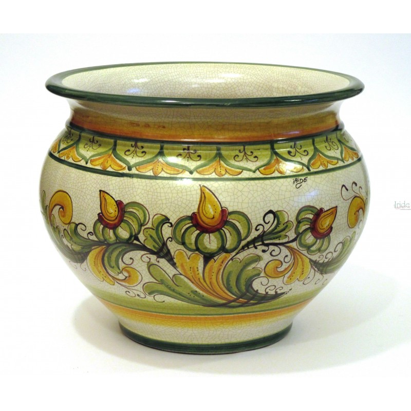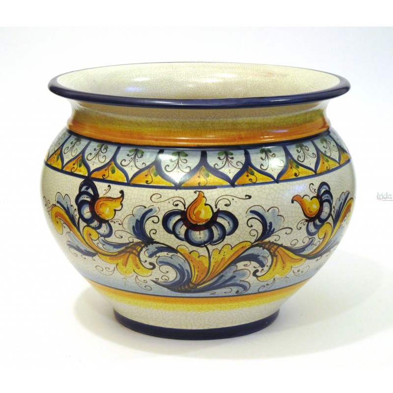 Portavaso in ceramica artistica decorata a mano, presenta la finitura della superficie satinata con effetto craquele
