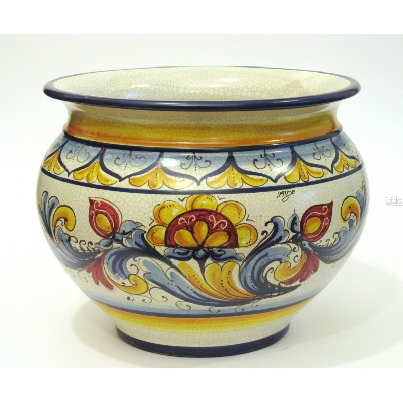 Portavaso in ceramica artistica decorata a mano, presenta la finitura della superficie satinata con effetto craquele