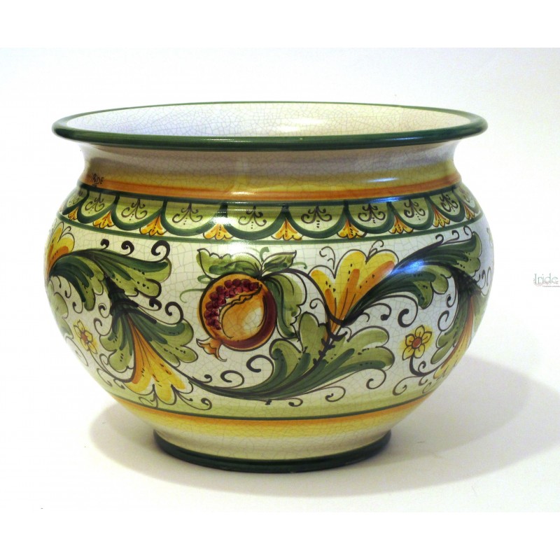 Portavaso in ceramica artistica decorata a mano, presenta la finitura della superficie satinata con effetto craquele