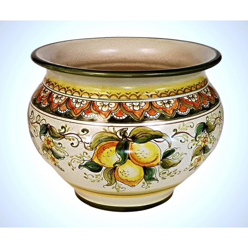 Portavaso in ceramica artistica decorata a mano, presenta la finitura della superficie satinata con effetto craquele