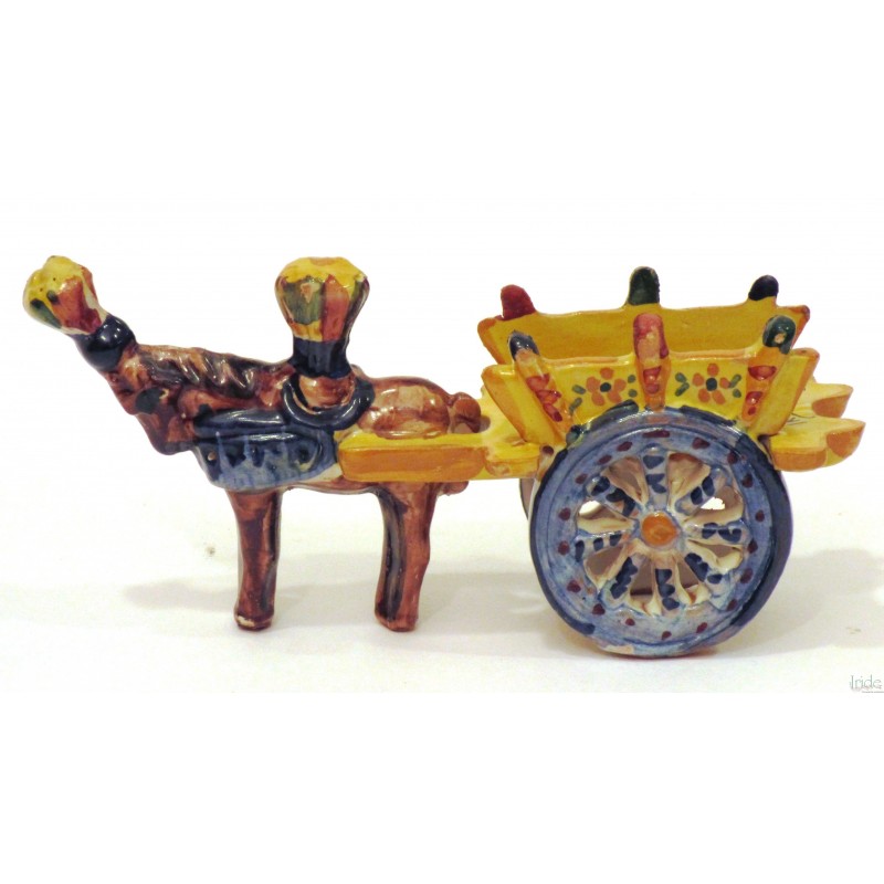 Carretto siciliano in ceramica modellato e dipinto a mano cm 18 x 10